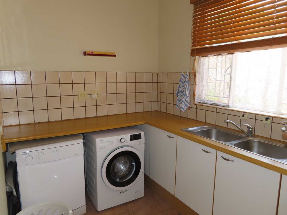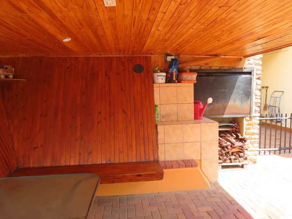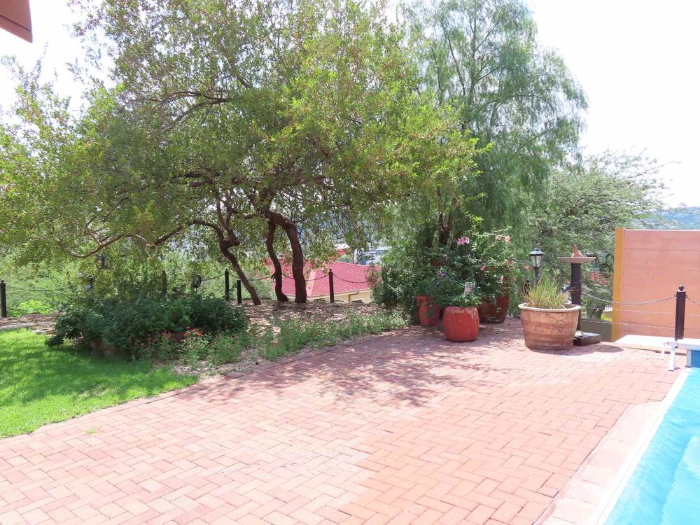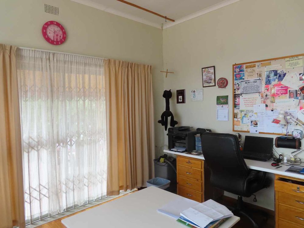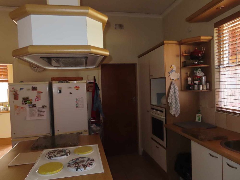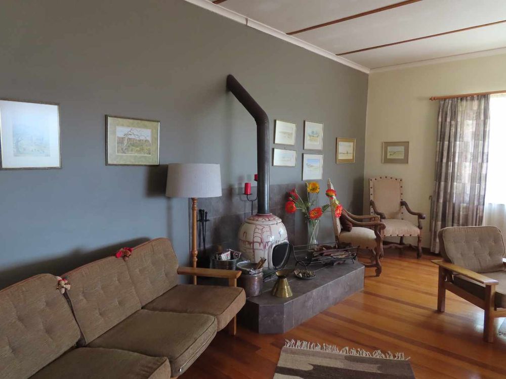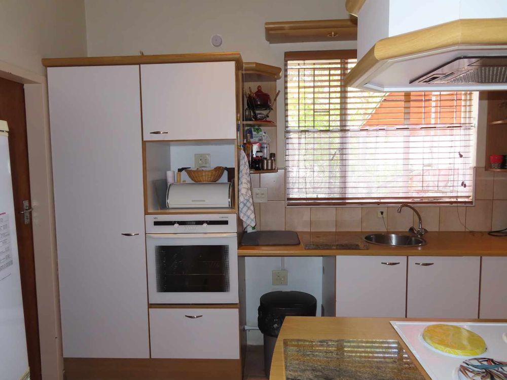 Main house: Cooled by an evaporative cooler, a lounge with fire place, dining room, kitchen with pantry and sculler, three massive bedrooms, 2 bathrooms, 2 verandas, entertainment area with braai and heated pool. There are gorgeous Oregon Pine floors in all rooms except passage and bathrooms. The garden is easy to maintain. A garage for 4 cars and parking for up to eight cars (or more, if need be!)