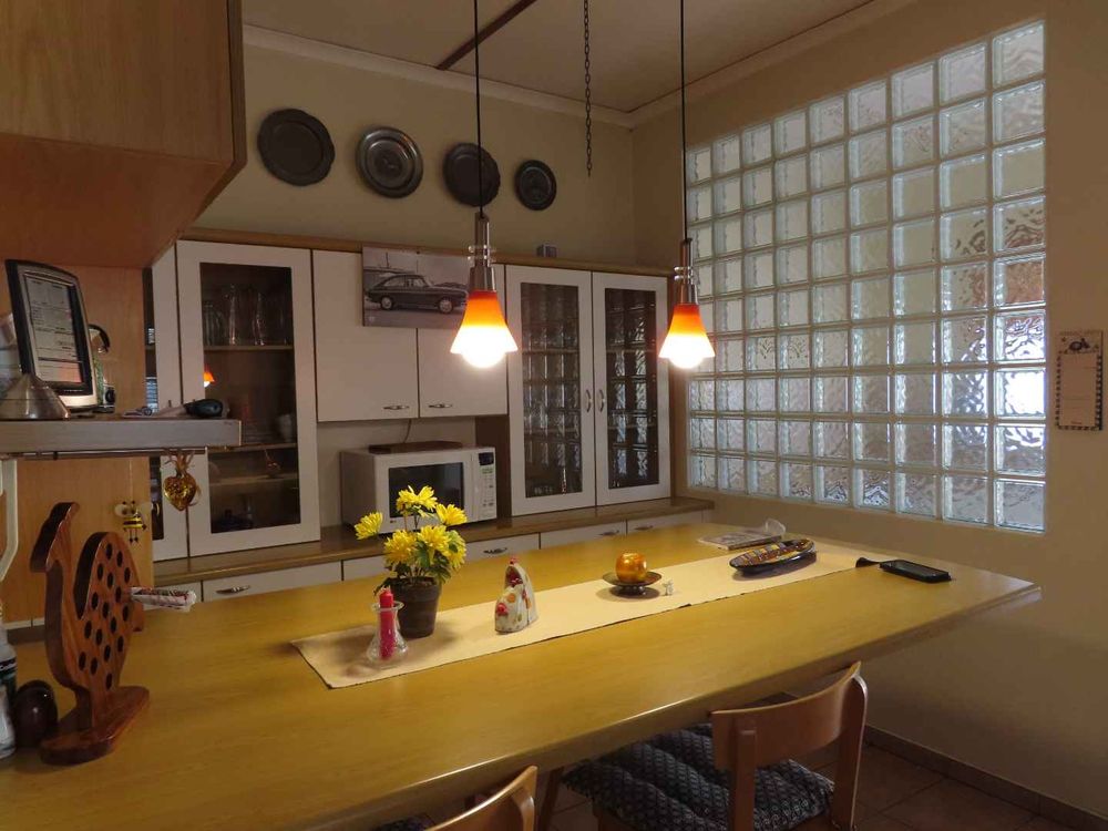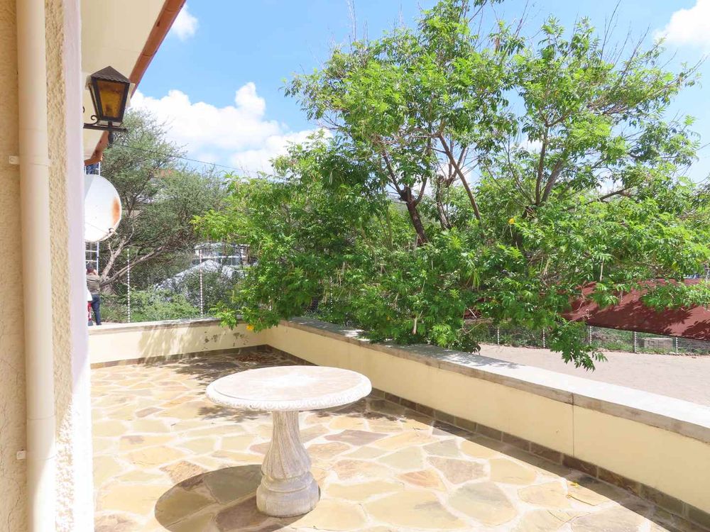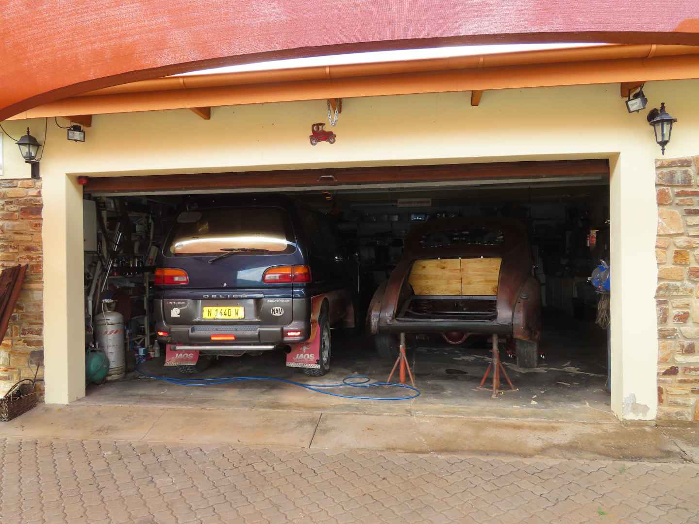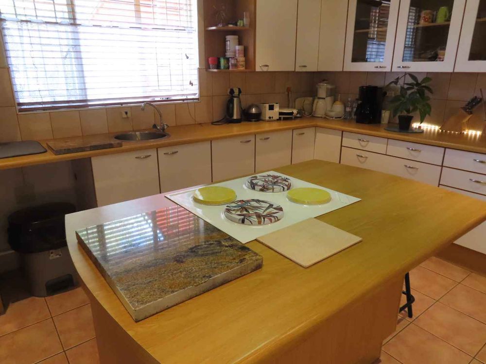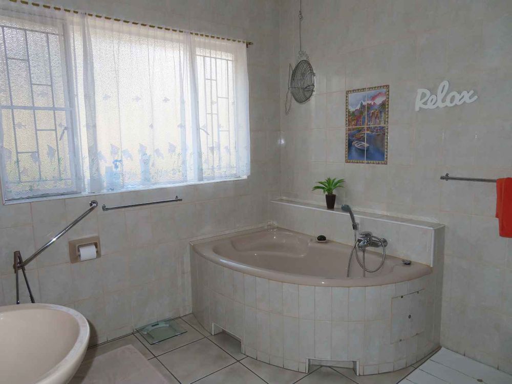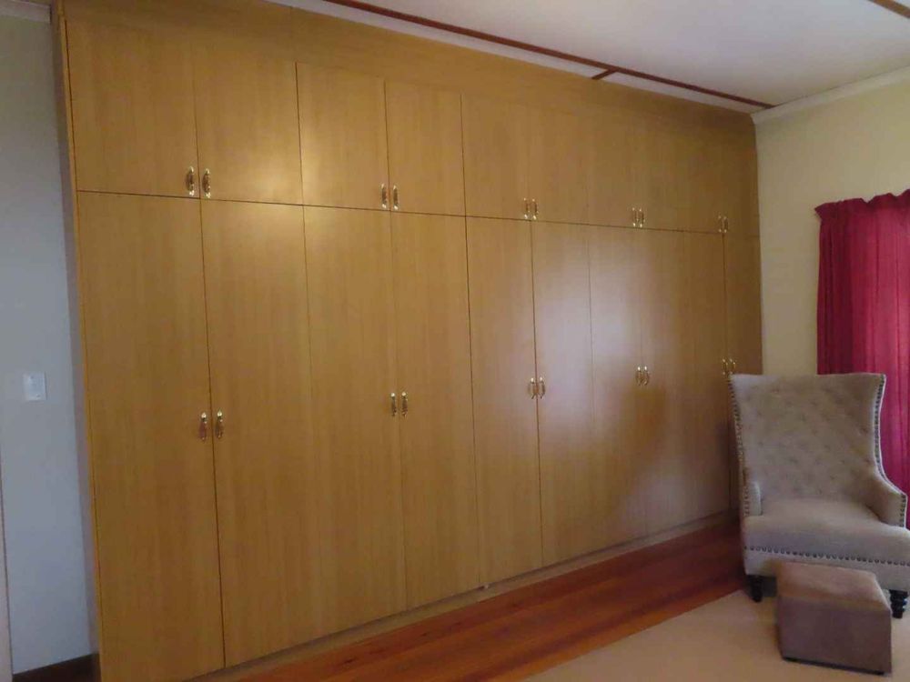 Main house: Cooled by an evaporative cooler, a lounge with fire place, dining room, kitchen with pantry and sculler, three massive bedrooms, 2 bathrooms, 2 verandas, entertainment area with braai and heated pool. There are gorgeous Oregon Pine floors in all rooms except passage and bathrooms. The garden is easy to maintain. A garage for 4 cars and parking for up to eight cars (or more, if need be!)