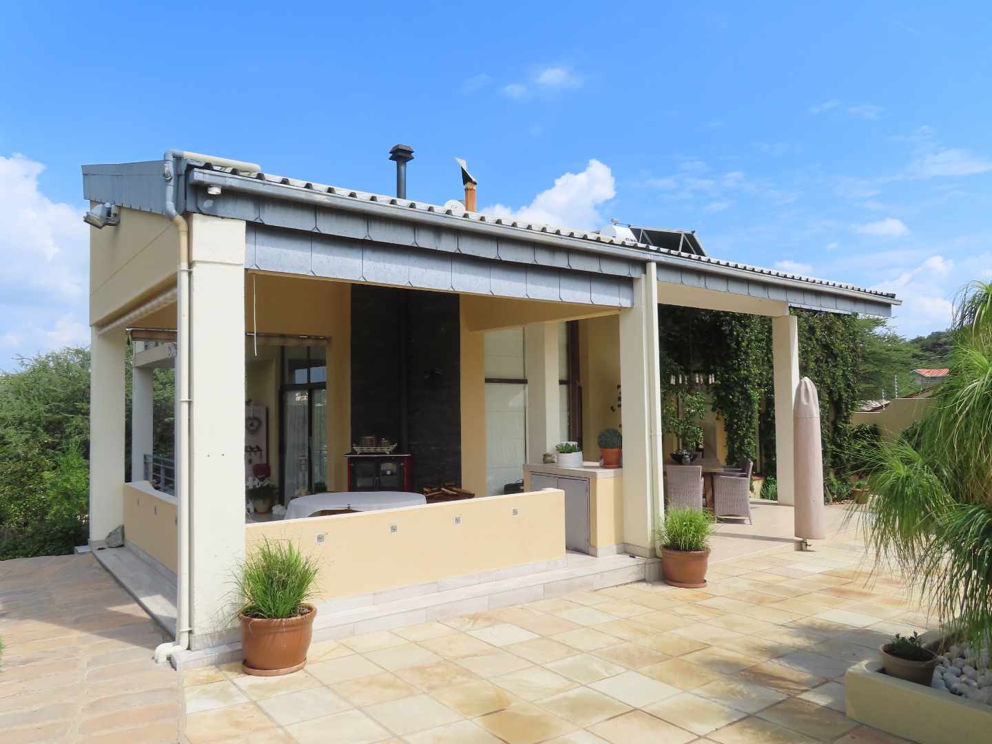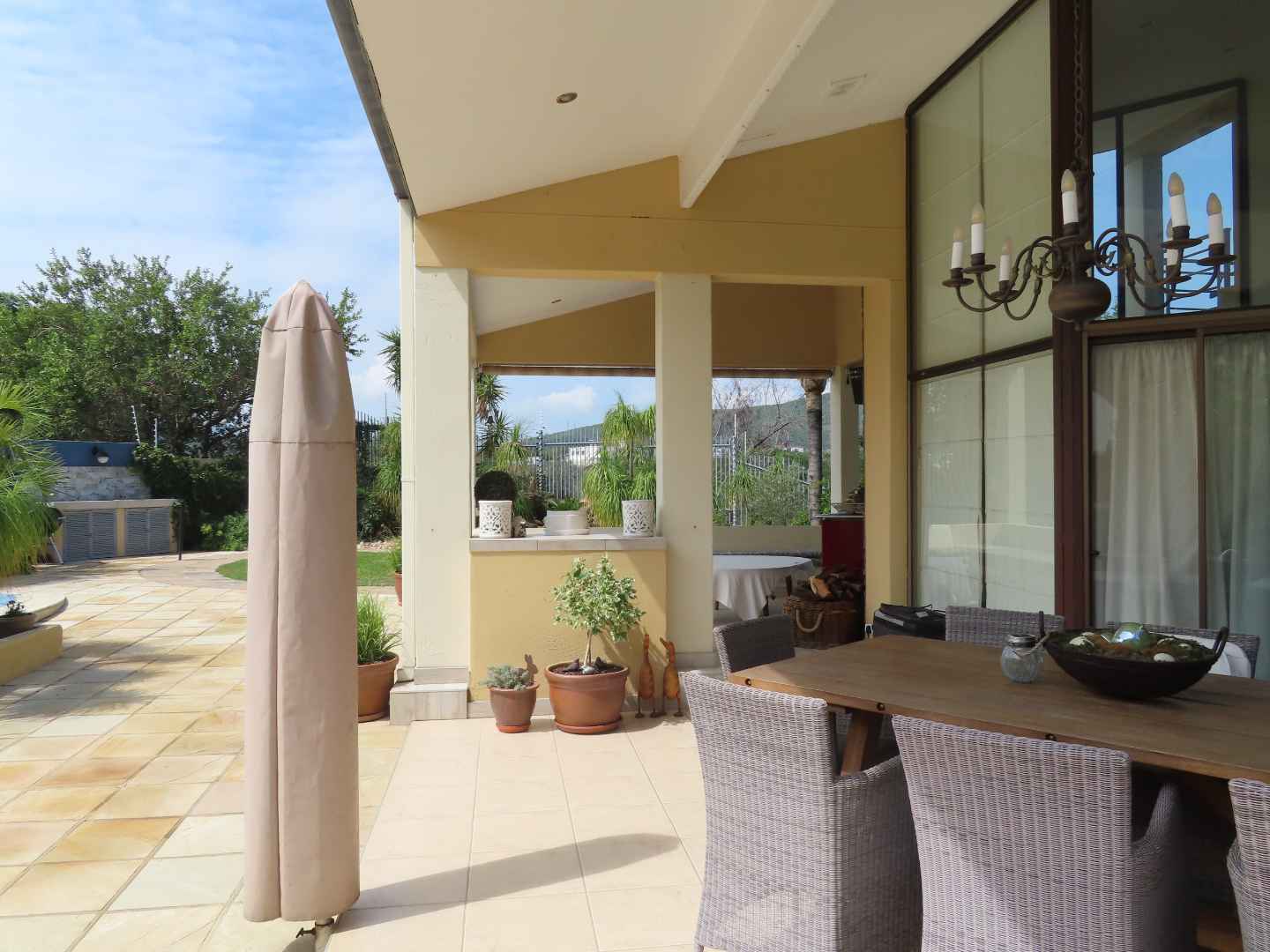 The covered veranda continues into a well-designed braai area with views of the surrounding mountains as well as the pool.