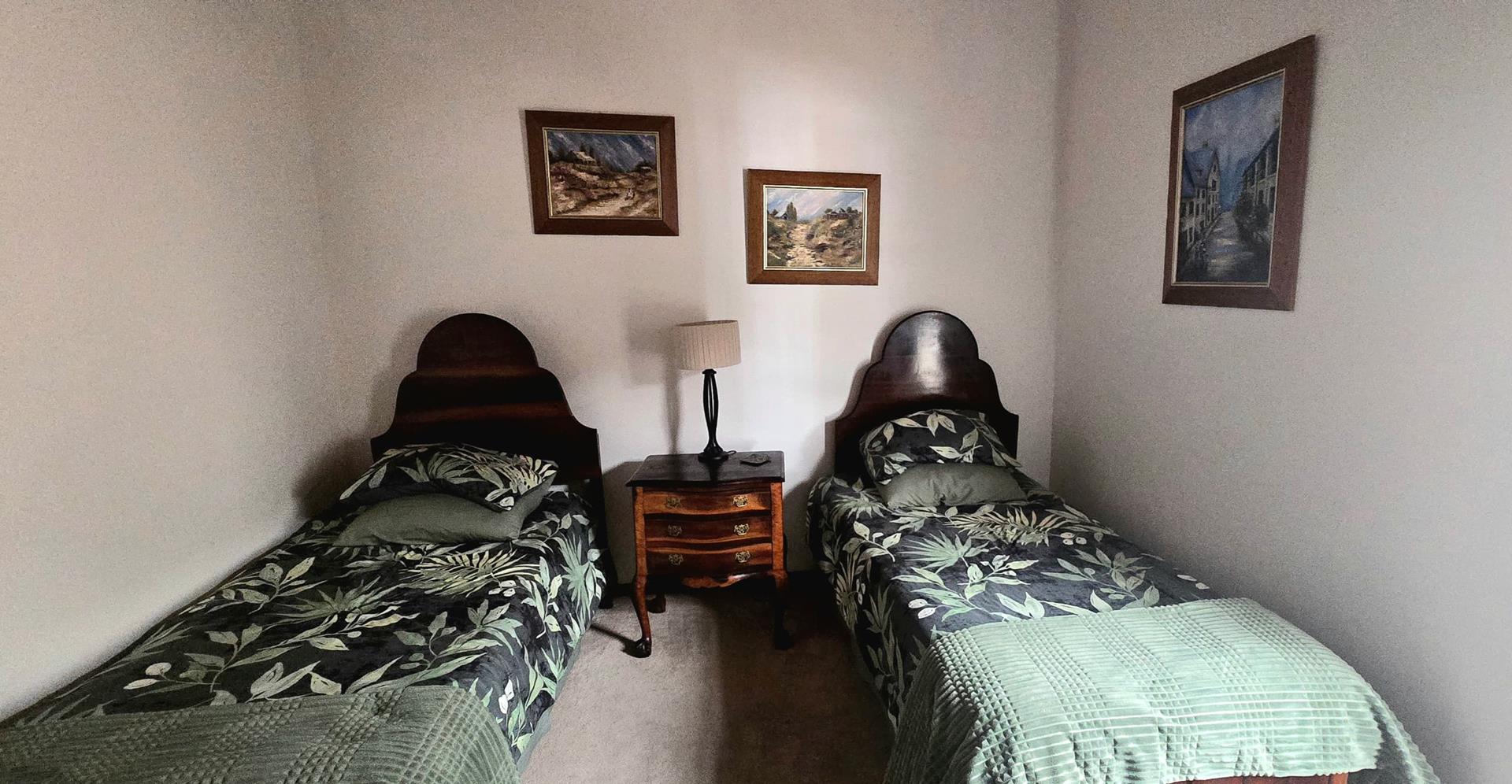 A 4-bedroom house with a 2-bedroom flat, large double garage with work space and an outbuilding for a hobby room, pool room or convertable to staff accommodation.
